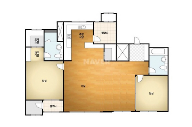 사실 이곳 거실엔 재미있는 에피소드가 있어요. 저희가 들어오기 이전에, 처음 분양받으신 분께서 옵션을 잘못 선택하셔서 방이 하나 없는 대신 훨씬 넓은 거실이 생기게 된 이야기인데요. 그 덕에 다른 집보다 좀 더 저렴하게 해주셨는데 전 오히려 이 부분이 더 마음에 들었던 것 같아요. 26살부터 열심히 모은 돈으로 구매한 의미 있는 집인데, 더 특별한 구조의 집을 얻게 되었으니까요.