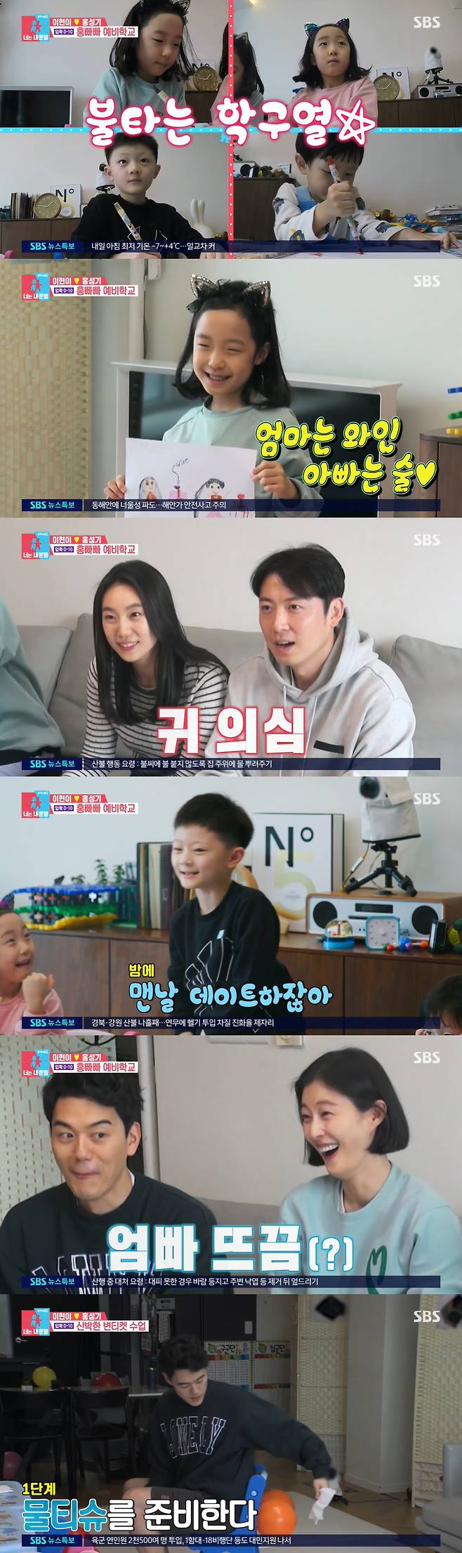 1교시는 미술 시간으로, 아이들은 엄마 아빠를 그렸다. 발표 시간, 절친의 딸은 "우리 엄마는 와인, 아빠를 술을 좋아한다"고 해 절친 부부를 당황하게 만들었다.