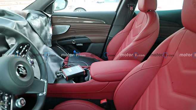 실내 대부분은 붉은 가죽으로 덮여 있는데, 조수석 도어만 갈색이다. 테스트뮬인 만큼 도어 색깔이 바뀔 가능성은 있지만, 버튼식 도어 핸들을 포함해 전체적인 내부 디자인을 확인할 수 있다.