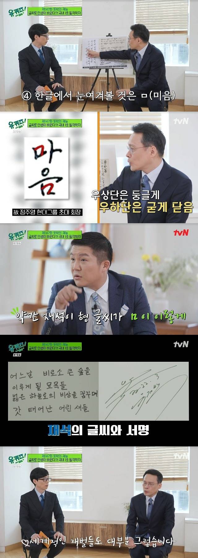 필적학자, 유재석 글씨체 분석 "세계적 재벌들과 비슷"(유퀴즈)