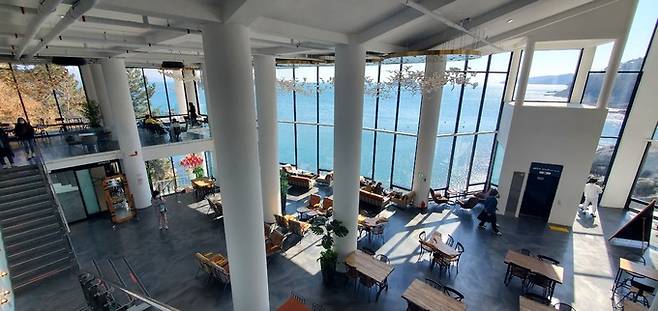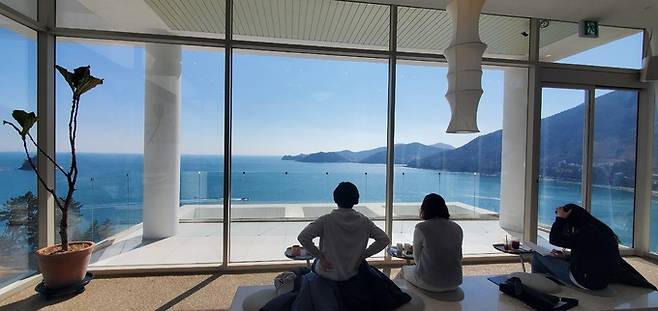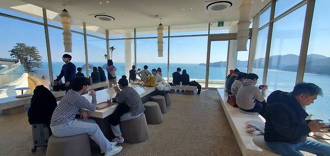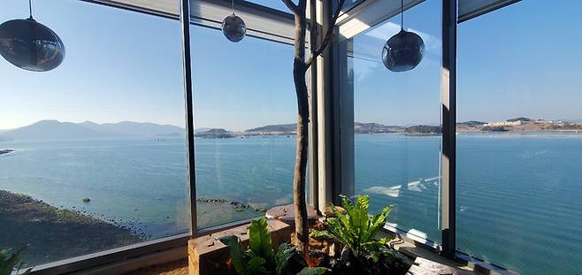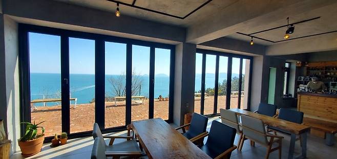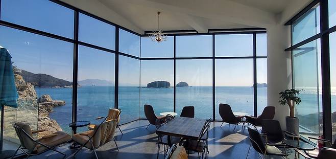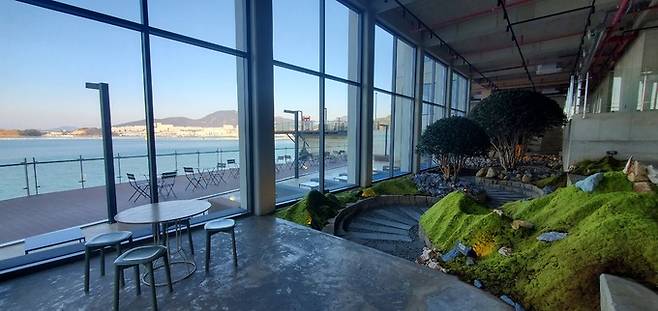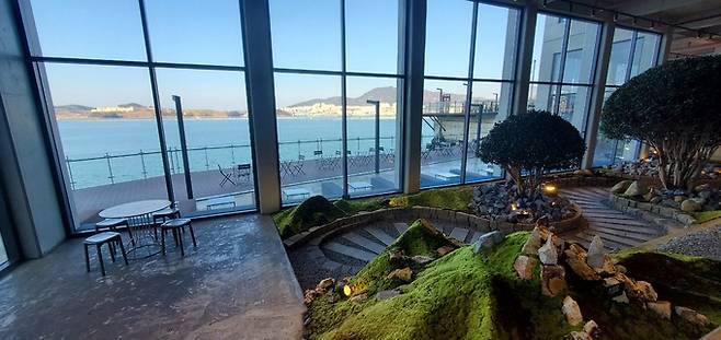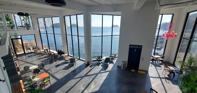 계동항 인근에 있는 ‘더 계동’은 아직 공식 오픈 전인데도 여행객 발길이 잦다. 카페 규모가 아주 크지는 않지만 바다를 품은 통창이 시원하고 번잡하지 않다.