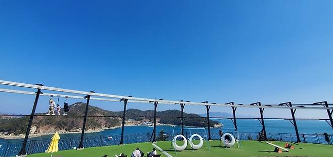 김종필(55)씨는 “3년간 준비했는데 절벽이라서 공사가 쉽지 않았다”며 “식물원 콘셉트인데 벌교에서 운영하고 있는 농장에서 청단풍과 애기동백 등을 가져왔다”고 설명했다. 동백나무 산책길, 바다 산책길, 대나무 산책길 등이 있고, 야외에 공연장과 데크, 빨간 전화부스 등이 포토존이다.