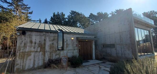 모이핀 입구에는 ‘대규모 커피문화단지 조성계획’을 알리고 있다. 지금의 카페는 6000여평 부지에 700평 공간의 ‘모이핀 오션’이고, 5000여평 부지에 1000평 규모의 ‘모이핀 스카이’는 12월에 추가로 문을 연다. 지난해 4월에는 숲 속과 바다를 느낄 수 있는 ‘피읖 카페’가 인근에 문을 열었다. 모이핀 바로 위에서 공사 중인 모이핀 스카이는 지난해 11월까지 운영된 펜션 ‘핀란드의 아침’이 있던 자리다. 피읖 카페도 핀란드의 ‘ㅍ’에서 따왔다.