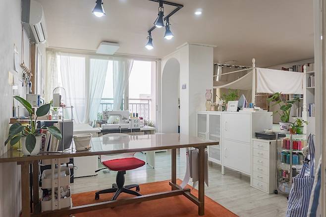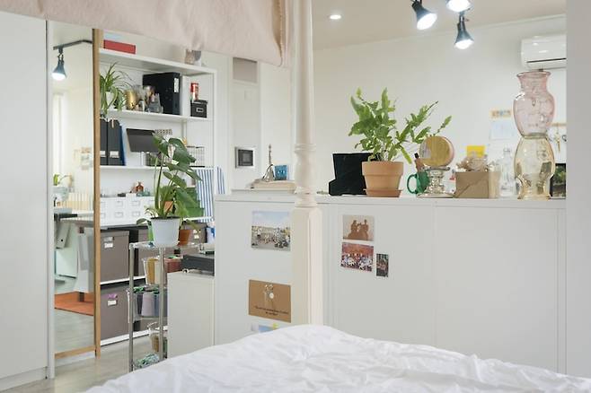 출근하면 가장 먼저 보이는 풍경입니다. 부모님과 함께 지내고 있지만 저만의 공간을 가지고 싶었어요. 마침 공간이 넓기도 해서 공간을 잘 활용해 자취방처럼 즐길 수 없을지 고민을 했죠.