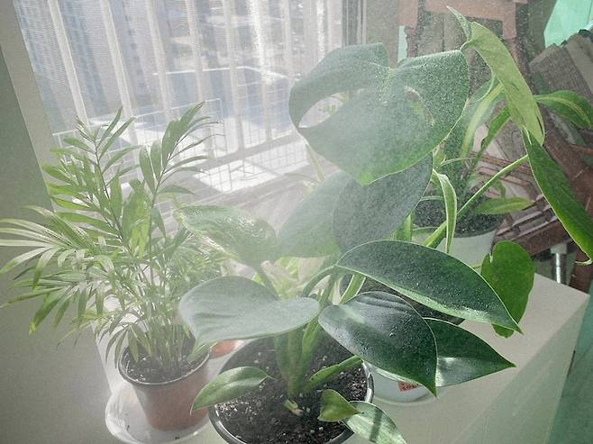 전에는 관심 없었는데 식물들이 있으니 기분이 좋더라고요. 올봄부터 갑자기 식물들이 눈에 들어와서 용기 내어 하나 둘 들여오기 시작했는데 지금은 제법 늘어났어요. 한때 다육이 살인마였던 과거를 청산하고, 매일 아침 물 주는 게 하루 일과가 되었어요. 초보 식집사로 거듭나는 중입니다. 실외처럼 느껴져 기분 전환도 되고 식물들이 있으니 편안한 느낌이 들어요.