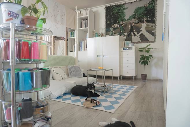 안녕하세요! 미메미라고 합니다. 이렇게 만나 뵙게 되어서 반가워요. 저는 방에서 일하고 놀고 자는 진성 집순이입니다(당당) 다섯 마리의 고양이를 키우는 집사이자 바느질로 생계를 이어나가고 있는 프로 삯바느질러이기도 해요. 바느질을 하게 되면서 집을 일터로 삼게 되었고, 직장 다닐 때보다 집에 있는 시간이 길어졌죠. 원래도 뭔가 만들거나 꾸미는 것을 좋아했는데 자연스럽게 집을 꾸미는 데 관심을 가지게 되었어요.