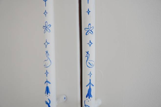손잡이는 맘에 드는 것이 없어 아크릴 물감으로 직접 그림을 그려주었어요. 엉성하지만 색다른 느낌이라 맘에 듭니다.