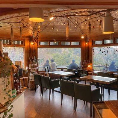 인더숲은 말 그대로 ‘숲 속에 있는’ 산장 카페다. 부산과 울산 사이 양산시에서 백동저수지를 검색하면 쉽게 찾아갈 수 있는데, 뒤로는 천성산이 있어 ‘그림 같은 풍경’이라는 말이 찰떡 같이 어울리는 곳이다. 통나무로 만든 산장 주변으로 알전구에 불이 켜지면서 마치 깊은 숲 속에 우리 밖에 없는 듯한 로맨틱한 분위기가 느껴진다. 이곳에선 오너바리스타가 내려주는 향 좋은 커피를 맛볼 수 있고, 2층에선 플라워숍을 따로 운영하고 있어 플라워 클래스나 프로포즈 대관, 스몰웨딩 등의 행사도 가능하다.