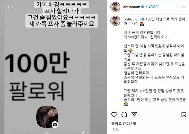 그러면서 “100만 팔로워 기념으로