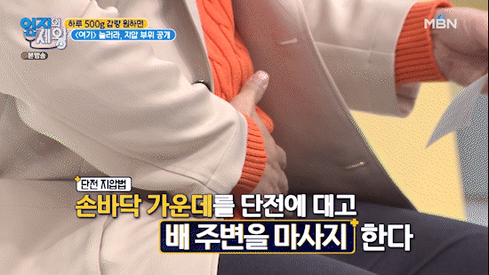 단전은 장과 가까운 곳으로, 우리 몸의 기와 혈을 순환시키는 아주 중요한 혈 자리입니다.