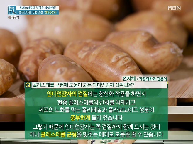 때문에 인디언 감자는 꼭! 껍질까지 함께 드시는 것이 체내 콜레스테롤 균형을 맞추는 데에도 도움을 줄 수 있습니다~