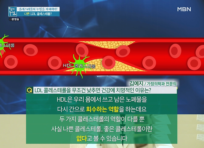 이 두 가지 콜레스테롤의 역할이 다를 뿐, 나쁜 콜레스테롤, 좋은 콜레스테롤이란 없다고 볼 수 있습니다.