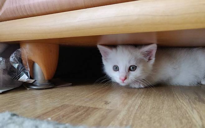 고양이가 무서움을 느끼면 도망치게 될 수 있어요. 이때는 자신을 보호할 수 있는 좁은 틈이나 어두운 곳 등 안전하다고 생각하는 장소에 몸을 숨기며 진정되기 전에는 잘 나오려고 하지 않아요.