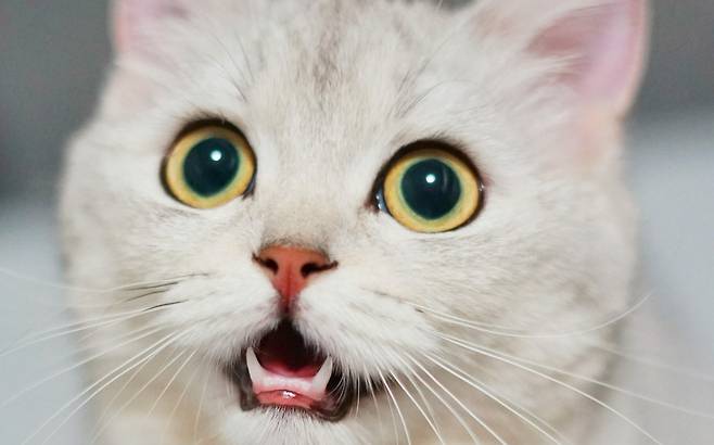사람과 비슷하게 고양이도 무서울 때 눈을 크게 떠요. 이때 눈만 크게 뜨는 게 아니라 동공도 확장됩니다.