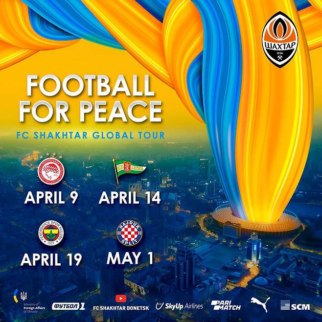 샤흐타르는 오늘(9일) 구단 홈페이지에 '평화를 위한 축구, 샤흐타르 글로벌 투어'라는 이름의 자선경기 일정을 발표했습니다.