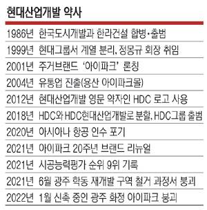 현대산업개발은 지난 1999년 현대그룹서 계열 분리됐다. 그해 4월 정몽규 회장이 취임하면서 ‘생각의 틀을 깨는 혁신(Think Innovation)’을 내세우며 등장했다. 이후 주거브랜드 아이파크(IPark)를 내세워 주택시장에서 승승장구했다. 2021년 시공능력평가 기준 9위의 국내 굴지 건설사로 성장했다. 주택 중심 사업만으로 괄목할 성과로 분류된다.