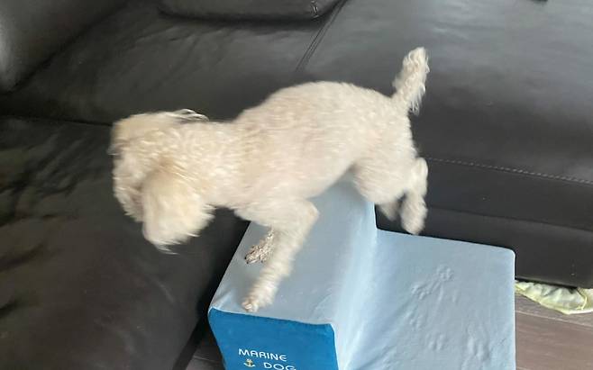 그래서 평소 강아지 관절과 뼈 건강에 신경 쓸 필요가 있는데요. 만약 소파와 침대에 올라오는 걸 좋아하는 강아지라면 계단을 사용해 관리해 주면 좋답니다.