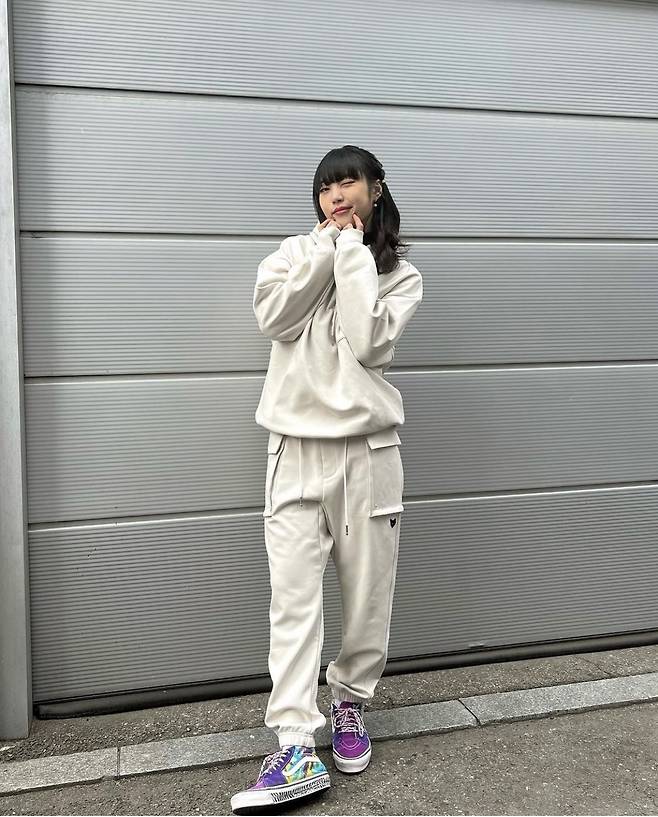 조나인님이 착용한 아이보리 컬러의 후드 & 조거팬츠 역시