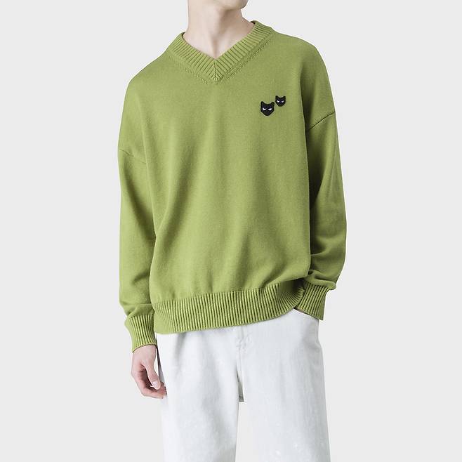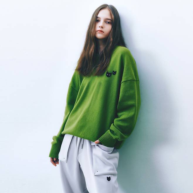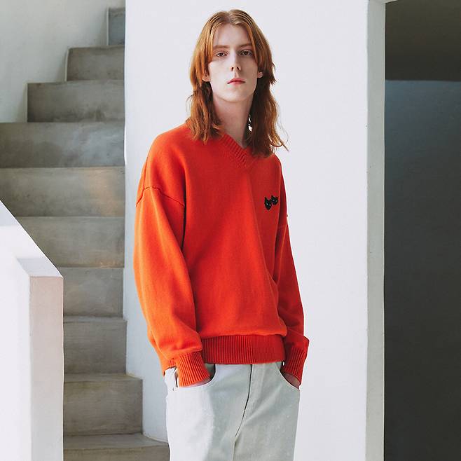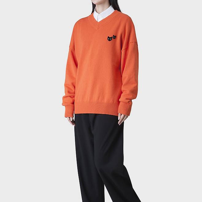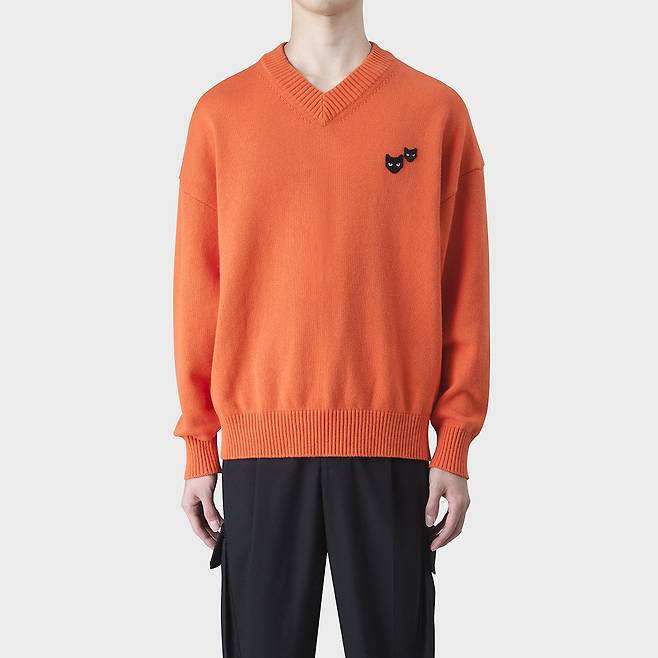 그리고 귀여운 패치가 돋보이는 오렌지 컬러의 니트,