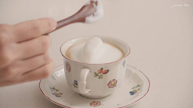 쫀쫀한 우유 거품 완성 :) 특별한 기술없이도 카페처럼 맛있는 라떼 한잔을 만들 수 있어 뿌듯해져요.