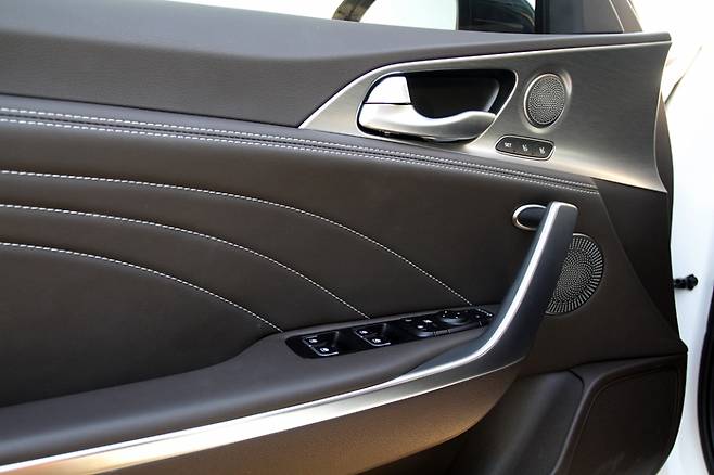 물론 옆모습의 밸런스 잡힌 디자인은 여느 수입차에 못지 않다. 특히 시승차인 2.5 가솔린 터보 사륜구동 마스터즈 트림은 후륜 타이어의 바닥면이 훨씬 넓다. 앞타이어 225/40/19, 뒷타이어 255/35/19로 후륜구동 기반의 사륜 파워의 주행특성을 잘 살렸다.