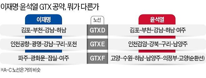 이재명·윤석열, GTX 노선은 비슷한데 '종착역'이 다르다
