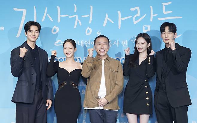 | ▲ '기상청 사람들' 차영훈 감독(가운데)과 송강, 박민영, 유라, 윤박 배우 |