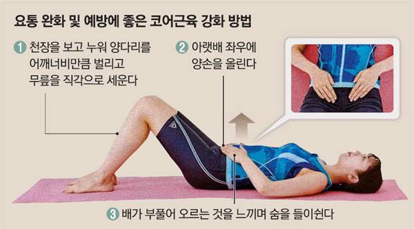 코어근육을 키우는 것도 통증 경감과 함께 예방에 매우 중요하다.