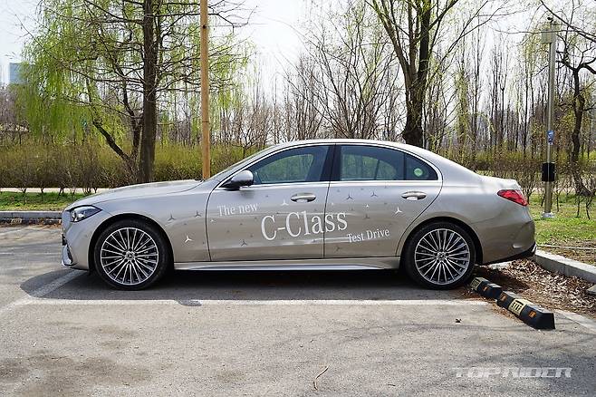 신형 C클래스의 차체는 전장 4755mm, 전폭 1820mm, 전고 1440mm, 휠베이스 2865mm로 이전 세대 대비 전장 50mm, 휠베이스는 25mm 늘어났다. 늘어난 휠베이스를 통해 2열 레그룸은 20mm 확대됐다. 시각적으로 기존 C클래스 대비 수치 이상으로 크게 느껴진다.