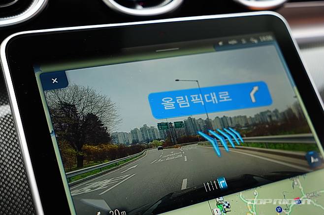 C300과 C200의 차이 중 하나인 헤드업 디스플레이의 면적은 S클래스에 준한다. 초기 HUD의 계기판의 시인성을 보완하는 수준을 넘어 전방에 상시로 띄워주는 증강현실에 가깝다. 내비게이션은 전방 카메라로 경로를 가상으로 띄워 주고 신호등을 인식하기도 한다.