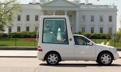 각국의 정상들이 타는 의전차량의 경우 대부분 현존하는 대형 세단에 방탄 작업을 거쳐서 특수 목적을 이룬 차량으로 개량하지만, 그렇지 않은 차량도 있어요. 대표적인 차량이 바로 교황의 의전차량인데, 교황의 의전차량은 일반 세단과 같은 차량의 뒷쪽에 전화부스처럼 생긴 공간이 있고, 이 공간 안에 교황이 착석하게 되는 구조로 만들어져 있어요. 교황이 탑승하는 의전차량은 파파모빌(Papamobile)이라는 이름을 가지고 있고, 벤츠에서 만든 차량이에요. 벤츠는 교황의 차량을 1930년부터 제작해왔어요.