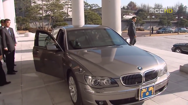 노무현 대통령 시절에는 BMW의 플래그십 세단인 760Li SC 차량이 의전차량으로 사용됐어요. 이 차량은 BMW의 전설적인 디자이너 크리스 뱅글이 디자인한 4세대 7시리즈를 기반으로 만든 차량이고 4세대 페이스리프트 모델을 방탄 사양으로 만든 하이 시큐리티 모델이었어요. 12기통 6리터 엔진과 6단 자동 변속기를 장착하고 있고 최고 출력 438마력의 힘을 내는 차량이에요.