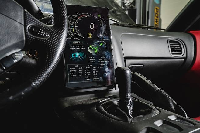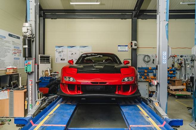 이 프로젝트는 2019년부터 시작되었고 94년식 마쓰다 RX-7을 미국에서 수입해온 뒤 엔진을 떼어내고 배터리와 전기모터를 얹은 것이다. 이 차가 만들어진 배경에는 제주도의 정책이 있다. 제주도는 다가올 2030년부터 탄소 중립 섬으로 거듭나기 위해 다양한 전기차 사업을 진행하고 있다. 그중 하나의 관광상품으로 사용하기 위해서 오래된 스포츠카를 전기차로 바꾸어 관광객들이 이용할 수 있게 만드는 것이다. 특히 실제 관광단지에 적용될 수 있는 기술을 개발하기 때문에 개조의 범위를 최소화하고 비용과 시간을 절감할 수 있는 방향으로 진행 중이다.