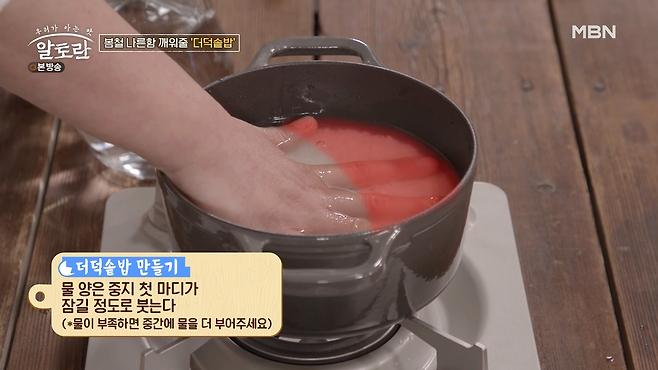 더덕 솥밥인데 더덕을 바로 넣질 않네요!