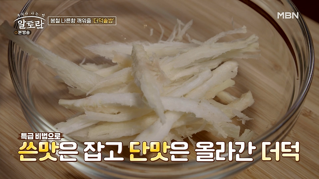 이 찢은 더덕을 들기름에 버무려 고소한 향을 살려줍니다!