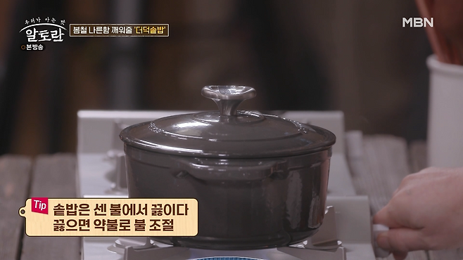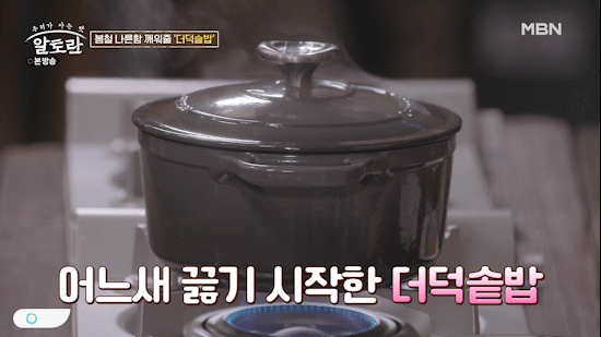 솥밥은 센 불에서 끓이다 끓으면 약불로 불 조절을 해야 합니다~