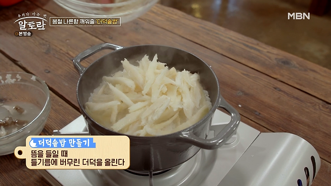 더덕은 뜸 들이는 과정에 넣어야 향도 좋고! 식감도 좋답니다!
