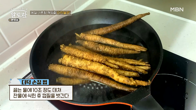 더덕의 사포닌 성분은 물에 잘 녹기 때문에 껍질을 벗긴 후에는 물에 오래 담가두면 안 됩니다! 그래서 5분 이상 담그는 것은 정말 비추천 드려요!