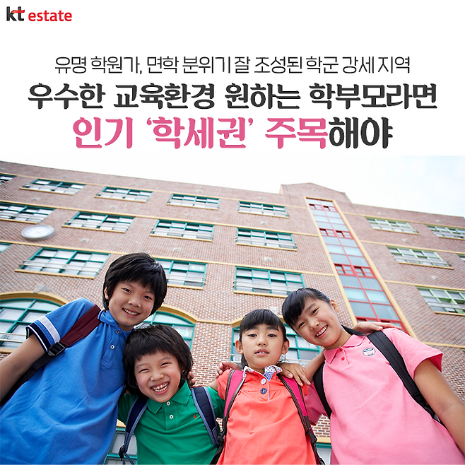 그동안 주택시장에서 학군은 집값에 커다란 영향을 끼쳐왔습니다. 일례로 명문 학군이 형성된 지역에는 늘 배후수요가 풍부합니다. 그 이유는 유해시설이 적은 만큼 정주여건이 뛰어나고, 아이들의 통학환경도 안전해 우수한 면학 분위기가 조성되기 때문입니다. 또한, 통상적으로 학군이 좋은 지역에는 유명 학원가가 지속적으로 발달하는 경우가 많은데요. 따라서 우수 학군지의 주거 선호도는 시간이 흐를수록 점차 높아질 수밖에 없습니다.