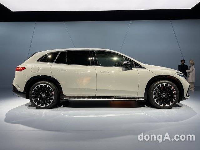 전형적인 대형 SUV 실루엣이지만 면면을 살펴보면 공기역학을 고려한 디자인이 곳곳에 적용됐다. 전체적인 유선 디자인도 공기흐름을 원활하게 해 전비 효율을 극대화하는데 초점을 맞춘 설계라고 한다. 전장은 5012mm, 휠베이스는 3210mm(EQS 세단과 동일)다.