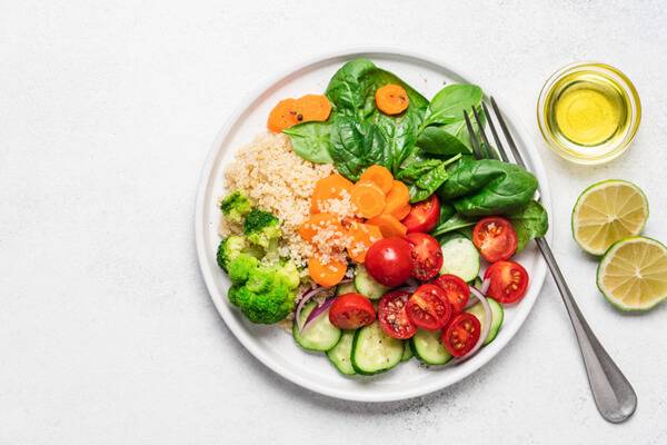 생채소와 과일을 먹는 것은 섬유질을 섭취할 수 있는 가장 좋은 방법입니다. 섬유질은 비만과 제2형 당뇨병을 예방할 수 있을 뿐만 아니라 소화도 잘되게 도와줍니다. 채소에 들어있는 섬유질은 혈중 콜레스테롤 관리에 도움을 줄 수 있으며 샐러드에 토마토, 당근, 오이를 추가하는 것도 좋은 방법입니다.