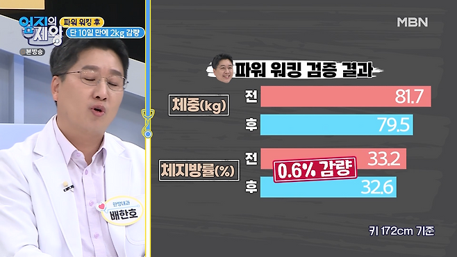 파워워킹을 하기 전, 배한호 의사의 체지방률은 무려 33.2%!