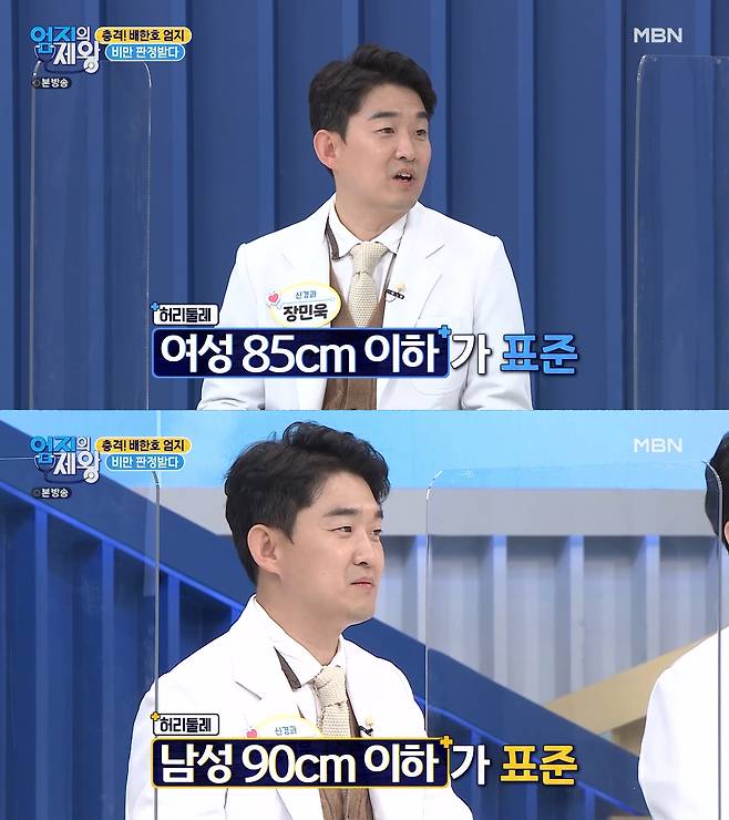 남성의 경우 90cm 이하가 표준이지만 배한호 의사의 허리둘레는 표준 이상인 것을 알 수 있죠..!