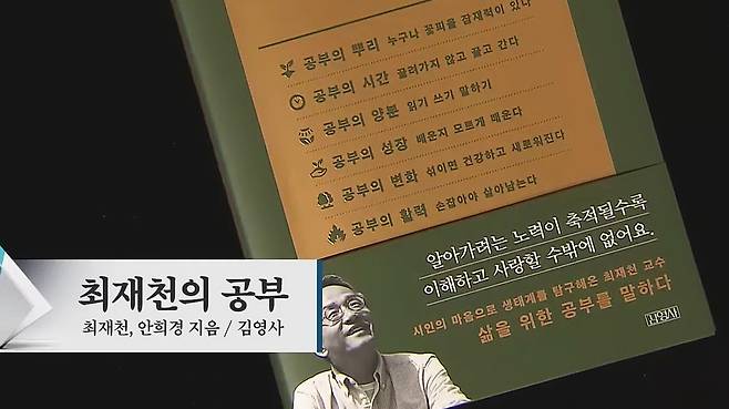 이처럼 공부 관련 책들이 여러 권 나와 있는 가운데, 지난달 공부에 대한 책이 한 권 더 출간됐습니다. 학자로도, 유튜버로도, 여러 베스트셀러의 저자로도 이름난 석좌교수가 공부란 무엇인지, 공부란 어떻게 하는 것인지, 책을 냈습니다. '최재천의 공부'입니다. 책은 두 명이 함께 썼습니다. 안희경 저널리스트가 묻고 최재천 교수가 답을 하는 형식으로 돼 있습니다.