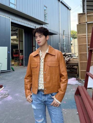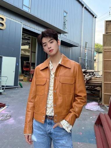 사진에는 차은우가 찢어진 청바지에 가죽재킷을 입고 시크한 표정으로 포즈를 취하고 있는 모습이 담겨있다.