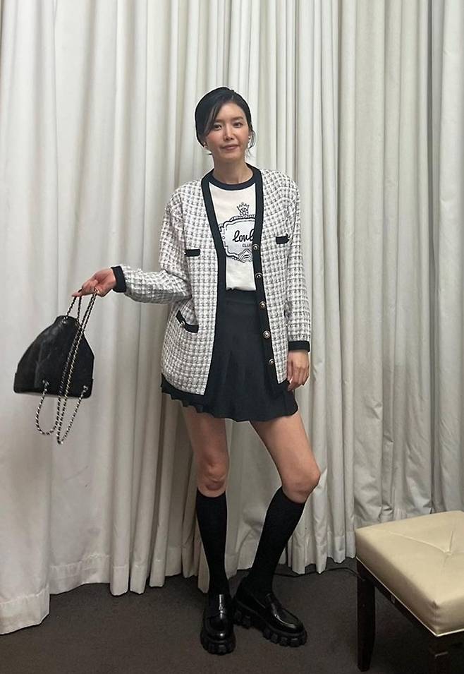 배우 채정안이 애정템 트위드 카디건과 테일러드 슈트룩 둘다 멋진 봄 스타일링을 선보였다.