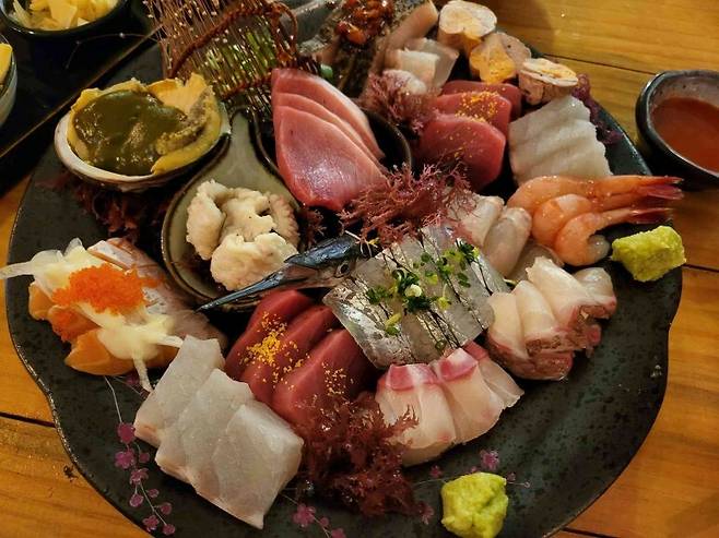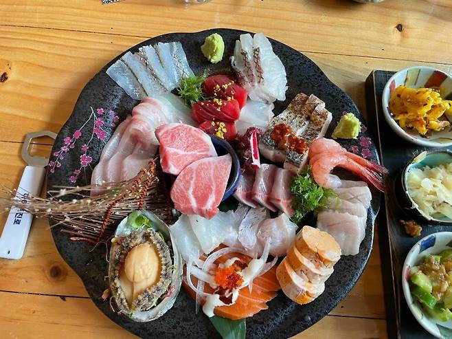 잠실새내역 근처 가성비가 좋은 이자카야라고 소문난 맛집에 방문했습니다. 이치에, 카덴, 아소토 이후 대안을 찾던 중 반가운 곳이었어요^^ 노중훈 작가님도 지나가다 들리시는 곳이더군요. 모듬사시미에서 가성비가 좋다라는 얘기가 나왔구나... 싶었습니다. 다채로운 종으로 3피스씩 구성되어 2판 서브됩니다. 전복하고 고등어초회 아귀간이 저는 특별히 맛있었어요.