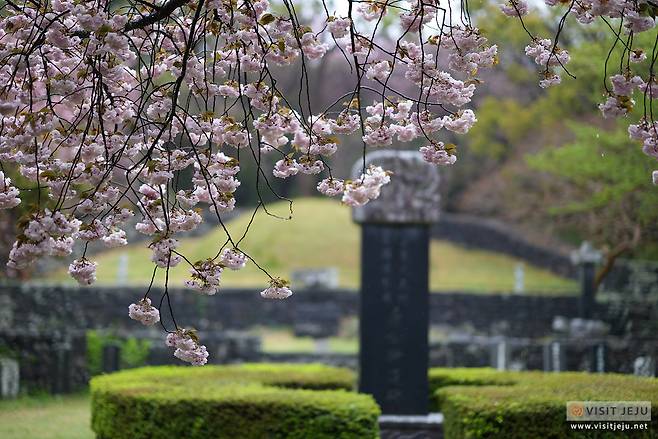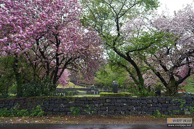 조천에 위치한 감사공묘역은 매년 이맘때만 되면 많은 이들이 찾는 곳입니다. 벚꽃 시즌 때부터 벚꽃을 보러, 벚꽃이 지면 겹벚꽃 감상하러 오는데요.