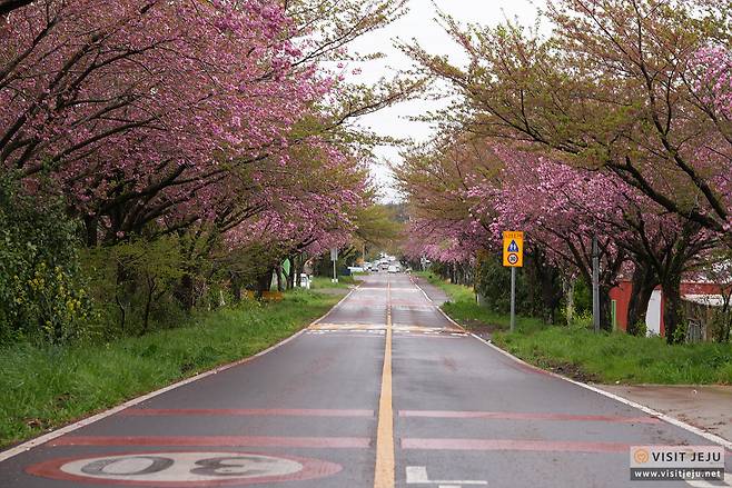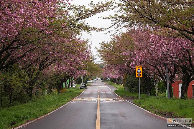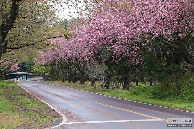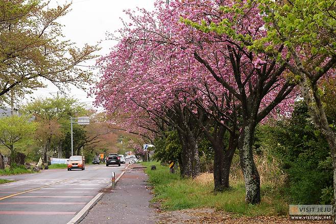 오라 컨트리클럽을 들어가는 길가 양옆으로 심어진 분홍 겹벚꽃 또한 제주시민들이 찾는 겹벚꽃 명소인데요. 주말이 되면 사진을 찍으러 오는 분들이 정말 많아서 주차하기도 힘들지도 몰라요.