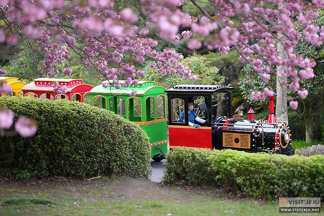서귀포 중산간에 위치한 상효원 수목원은 8만 여평의 넓은 공원에 사시사철 꽃으로 장식되는 곳인데요. 현재는 튤립과 겹벚곷으로 우리를 행복하게 만들어 줍니다. 들어가셔서 기차를 타고 한 바퀴를 둘러보는 것도 좋은 방법이에요. 다른 곳과는 다르게 역마다 정차 가능하고 한번 기차표(성인 1인 5천 원)를 사고 나면 역에서 또 다시 탈 수 있어서 거동이 불편하신 분들과 가기에 더욱 좋습니다.
